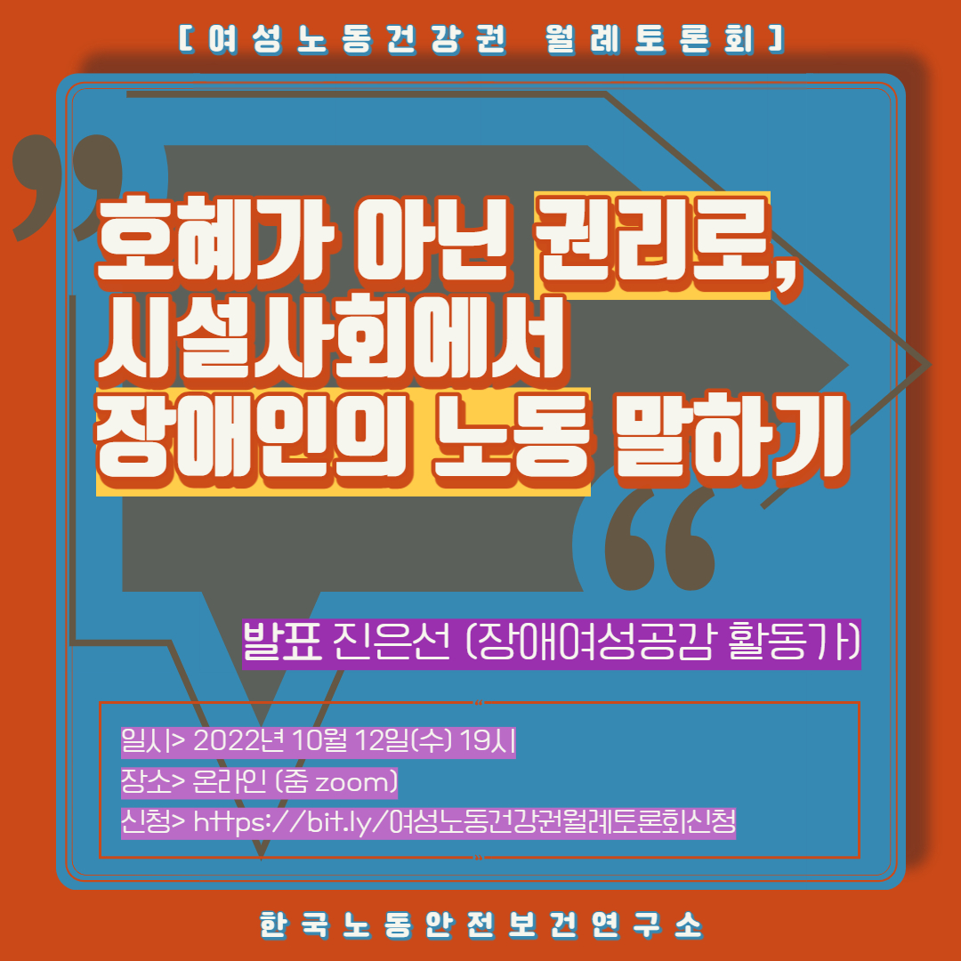 [안내] 10월 여성노동건강권 월례토론회 참여 모집 중