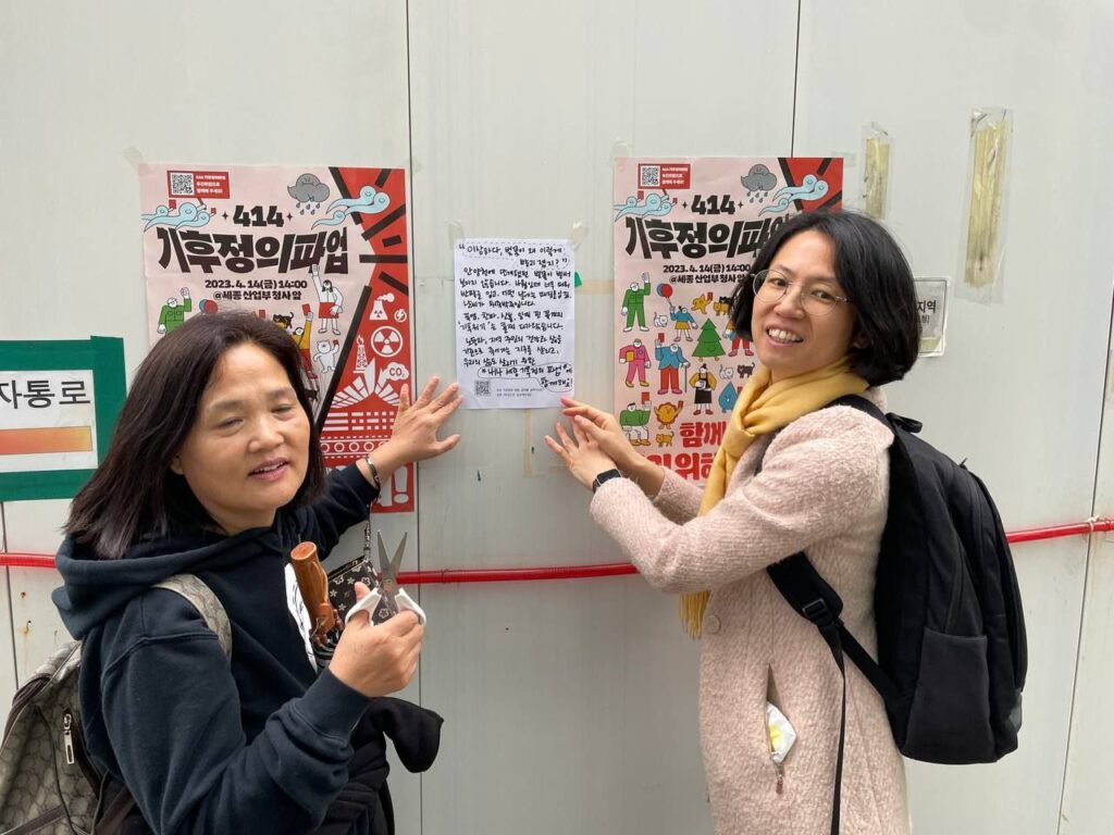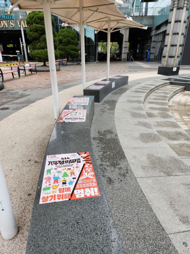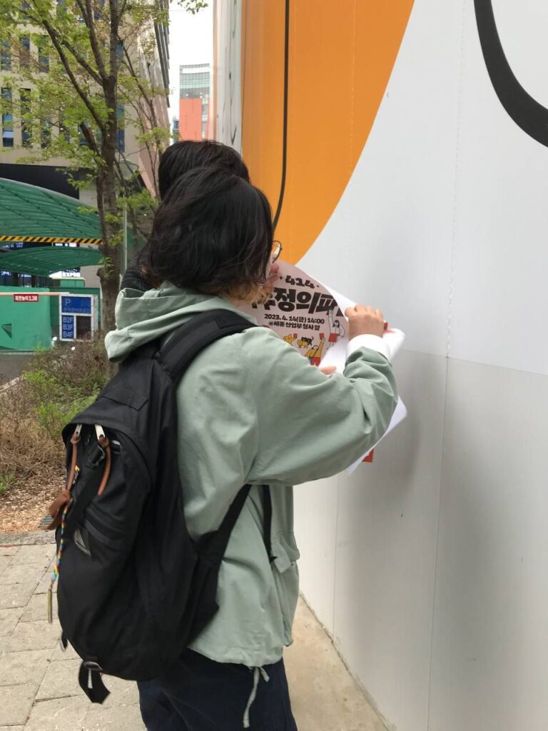 [414 기후정의파업 포스터 행동] 활동소식 4월 11일, 한노보연, 김용균재단, 반올림이 공동으로 가산디지털단지역 주변에 “함께 살기 위해 멈춰!” 414 기후정의파업 포스터행동을 진행했습니다.한노보연은 414 기후정의파업에, 야간노동 철폐와 노동시간 단축 등을 이야기하며 유통노동자와 함께 행진합니다.더 많은 사람들이 4월 14일, 세종에서 함께 보았으면 좋겠습니다. 투쟁! ♥212023년 04월 12일2023년 04월 12일활동소식