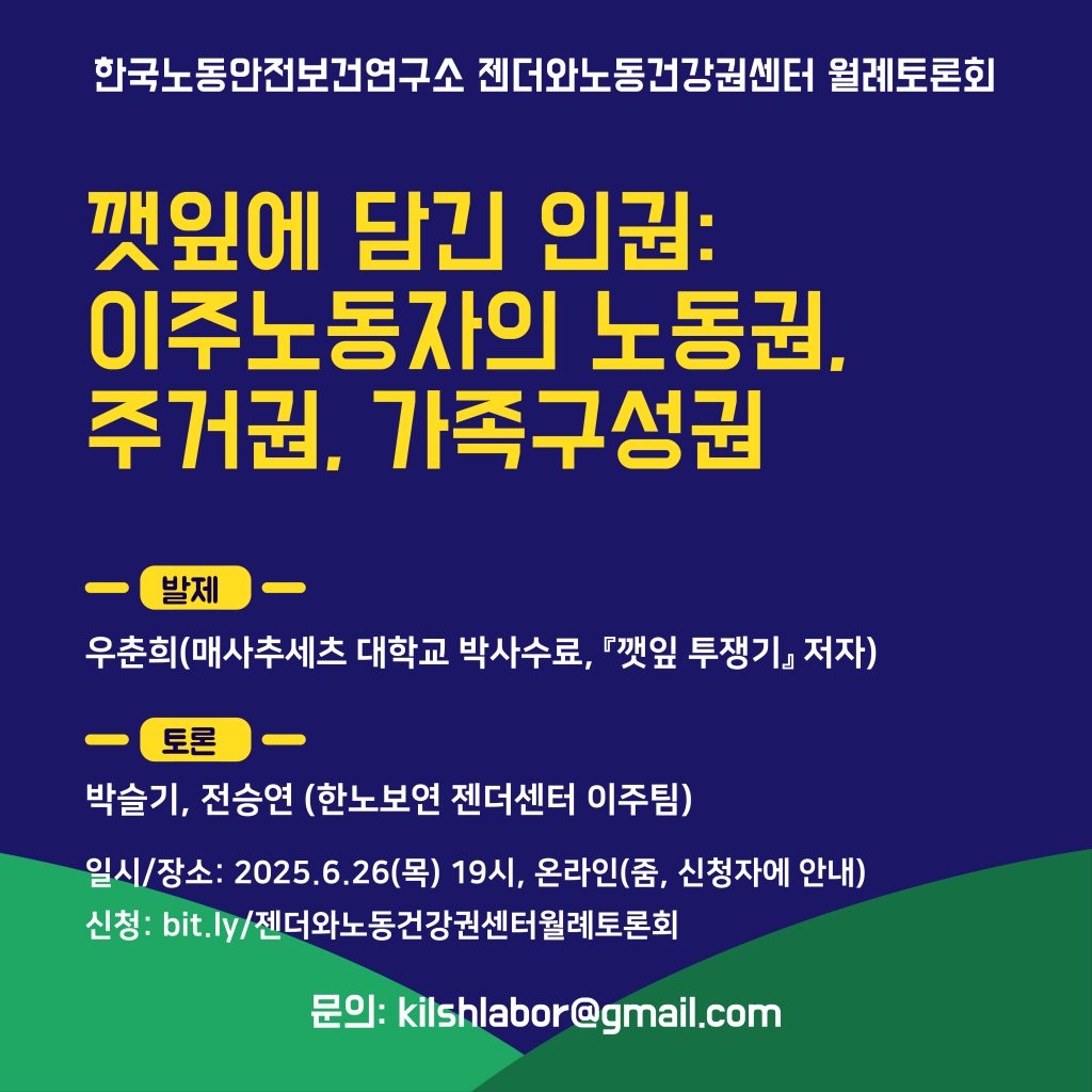 [한국노동안전보건연구소 젠더와노동건강권센터 6월 월례토론회]