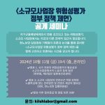 [정책의견서] 이재명 정부의 산업재해 예방대책 수립에 필요한 핵심 과제(25.08.14) 2025-08-15 [노동시간센터 11월 월례토론회] 물류센터 야간노동과 노동자 건강권 2024-11-08 [토론회] 민주노운동에서의 이주노동자 차별과 배제에 관한 토론회 2024-10-23 [산재보험 제도 개악대응함께] 2024 국정감사 대응 활동 2024-10-23 [성명] 정근식 서울시교육감에게 요구한다 (2024.10.17) 2024-10-17 한국노동안전보건연구소 젠더와노동건강권센터 10월 월례토론회 2024-10-11 [노동시간센터 10월 월례토론회] 성과임금제도의 폐해와 정규직 전환 이후 차별적 노동 실태 – LG유플러스 사례를 중심으로 2024-10-10 [공동성명] 학교 내 성폭력 해결 외면하고 공익제보교사 징계한 서울시교육청 규탄한다. 2024-10-04 ‘이주 가사돌봄노동자 권리 보장을 위한 연대회의’ 출범 기자회견 (09.26) 2024-09-26 [부산 강좌] 산재보험 60주년 한노보연 기획강좌 2024-09-13 <소규모사업장 위험성평가 정부 정책 제언> 공개 세미나 2024-09-13 [한국노동안전보건연구소 젠더와노동건강권센터 월례토론회] 일터이자 폭력과 해방의 온라인공간 살아가기 2024-09-13 [한국노동안전보건연구소 노동시간센터 9월 월례토론회] 금속산업 현장 노동시간 실태와 과제 2024-09-13 [토론회]전주리싸이클링타운 사태로 본 폐기물 처리시설 공공성과 노동권 국회토론회 (20240902) 2024-08-31 [전국 이주·인권단체 공동 규탄성명] ‘외국인 최저임금 차등적용’이라는 인종차별적 논의를 즉각 멈춰라!(2024.08.28) 2024-08-29 한국-캐나다 젠더노동건강 심포지움 개최 2024-08-27