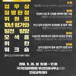 [성명서] 이재명 정부가 사람을 죽였다! 지금 당장 미등록이주민정부합동 단속 중단하라! 2025-10-29 [보듬는학교] 2025년 하반기 열매과정 : 노동재해 어떻게 대응해야 할까 2025-10-24 [한노보연 당장멈춰 기획팀 기획강좌] 함께 읽는 판결문: 아리셀 참사와 중대재해 처벌법 2025-10-24 [정책의견서] 이재명 정부의 산업재해 예방대책 수립에 필요한 핵심 과제(25.08.14) 2025-08-15 기간제교사에게 노조 할 권리를! 2018-11-14 장시간 조장하는 탄력근로제 반대한다! 2018-11-14 [안내] 제주 현장실습생 이민호 님 사망 1주기 추모제 2018-11-14 [기자회견] 11.14 탄력 근로시간제 확대 규탄 기자회견 2018-11-14 [안내] 업무상 질병판정위원회 10년 평가와 발전 방향 모색을 위한 워크샵 2018-11-09 [기자회견] 이산화탄소 누출사고 책임자 처벌! 삼성 고발 기자회견 2018-11-06 일하는 페미들의 팟캐스트 ‘을들의 당나귀 귀’ > 여성노동자 건강권 특집2. 국가보다 큰 권력, 삼성에 맞선 반올림의 10년 2018-11-05 일하는 페미들의 팟캐스트 ‘을들의 당나귀 귀’ > 여성노동자 건강권 특집1. 위험하지 않아서가 아니라 보호받지 못해서 2018-11-05 [성명서] 산재사망 하한형 처벌 도입 포함하여, 산업안전보건법 전부개정안 통과시켜라! 2018-11-05 [기자회견] 노동자를 위한 정규직 전환은 직접고용 뿐이다! 고용노동부가 책임지고 자회사 전환 중단시켜라! 2018-10-30 [기자회견] 버스보조금 부정수급의혹, 관리감독 소홀 경기도규탄 기자회견 2018-10-29 위험의 외주화 금지, 원청책임 및 처벌강화, 노동자 참여확대 입법쟁취! 민주노총 결의대회 안내 2018-10-23 [기자회견] 2018 전국평등행진 부산기자회견 2018-10-22 [기자회견] 정부와 국회는 산업안전보건법 개정으로 일하는 모든 사람의 안전과 건강을 보호하라! 2018-10-22 [강연회] 캐런메싱 강연회 안내 및 신청 2018-10-22