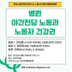 [정책의견서] 이재명 정부의 산업재해 예방대책 수립에 필요한 핵심 과제(25.08.14) 2025-08-15 [공동성명] 코로나19 재유행, 상병수당과 유급병가제도를 전격 시행하라! 2024-08-23 [기자회견] 삼성은 아리셀 참사의 실질적 책임이 있는 <에스코넥>과 거래를 중단하라!(2024.08.23) 2024-08-23 한국노동안전보건연구소 노동시간센터 8월 월례토론회 2024-08-11 907기후정의행진 선포식 및 포스터 공동행동 2024-08-05 [기자회견 연대발언] 허위 근거로 택시노동자의 30년 염원을 짓밟는 택시월급제법 폐기안을 폐기하라! (20240801) 2024-08-01 한국-캐나다 젠더노동건강 심포지움 2024-07-26 <택시월급제 무력화하는 택시발전법 개정안 반대 노동안전보건단체 의견서> 2024-07-19 [공동성명] 반헌법적인 재난 규정으로 노동권을 침해하려는 윤석열 정부 규탄한다! 2024-07-19 [토론회] 아프면 쉴 권리 보장을 위한 입법 과제 제안 2024-07-10 한국노동안전보건연구소 노동시간센터 7월 월례토론회 2024-07-10 [성명] 여성의 안전하고 행복한 삶이 저출생의 최우선 대책이다 -정부의 <저출생 추세 반전을 위한 대책>을 규탄하며- 2024-07-03 정부의 저출생 대책이야말로 국가비상사태다 : 잘못된 방향의 정부 저출생 대책 비판 기자회견 2024-07-02 [토론회] 산재보험 60주년 산재노동자 권리 보장을 위한 산재보험개선과 과제 2024-06-28 [시민 사회 종교계 공동 긴급기자회견] 공공성 없는 윤석열 정부 의료 정책 규탄, 공공성 중심 의료개혁 촉구 기자회견 2024-06-28 [자료집] “일요일에 일하는 사람들을 위한 노동법이 필요합니다” 서비스노동자 주말휴식권 보장 및 주말노동 가치 인정을 위한 국회토론회 2024-06-27