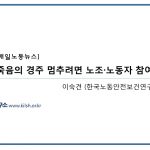[언론보도] DMF 중독 사망사고 이후 무엇이 변했나 ⑥ (매일노동뉴스) 2017-09-21 [언론보도] “낡은 교대제 개편해 노동시간단축하고 일자리 창출하자” (매일노동뉴스) 2017-09-21 [언론보도] “정신질환 시달리는 유성기업 노동자 임시건강진단 당장 실시하라” (한겨레) 2017-09-15 [언론보도] “수원 이주노동자 집단폭행 사건 철저 수사해야” (뉴스1) 2017-09-14 [언론보도] 시급히 해결해야 할 석면질환 과제 (매일노동뉴스) 2017-09-14 [언론보도] 화학물질 노출에 되면 생기들 병들, 이정도일 줄이야 (오마이뉴스) 2017-09-14 [언론보도] “과로사 의료·법률상담 지원”…시민단체·전문가 모여 ‘과로사 OUT’ 대응 나섰다 (경향) 2017-09-12 [언론보도] [방문노동자 열에 여덟 ‘욕설·신체적 위협’ 경험] “옥상에서 니퍼 던지는 고객 무서워 주저앉았다” (매일노동뉴스) 2017-09-11 [언론보도] [화학물질 유해성을 바라보는 이중 잣대] 소비자는 불안하고 노동자는 불감하다? (매일노동뉴스) 2017-09-08 [언론보도] 골병드는 한국…”노동자 ‘쉴 권리·유급휴일’ 법제화하라” (뉴스1) 2017-09-08 [언론보도] 노화로 ‘근육마름병’ 오듯..한국인들 과로로 ‘시간마름병’ (경향) 2017-09-08 [언론보도] DMF 중독 사망사고 이후 무엇이 변했나 ⑤ (매일노동뉴스) 2017-09-04 [언론보도] 어떤 의사든 손쉽게 직업성 중독 보고할 수 있어야 (매일노동뉴스) 2017-09-04 [언론보도] 죽음의 경주 멈추려면 노조·노동자 참여 보장해야 (매일노동뉴스) 2017-09-04 [언론보도] 직원 ‘갈아넣어’ 게임 만드는 게임업계, 막을 순 없나 2017-08-22