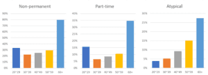 Figure 2. The proportion of insecure jobs in different age groups, August 2017 (Source; Korean Statistical Information Service)