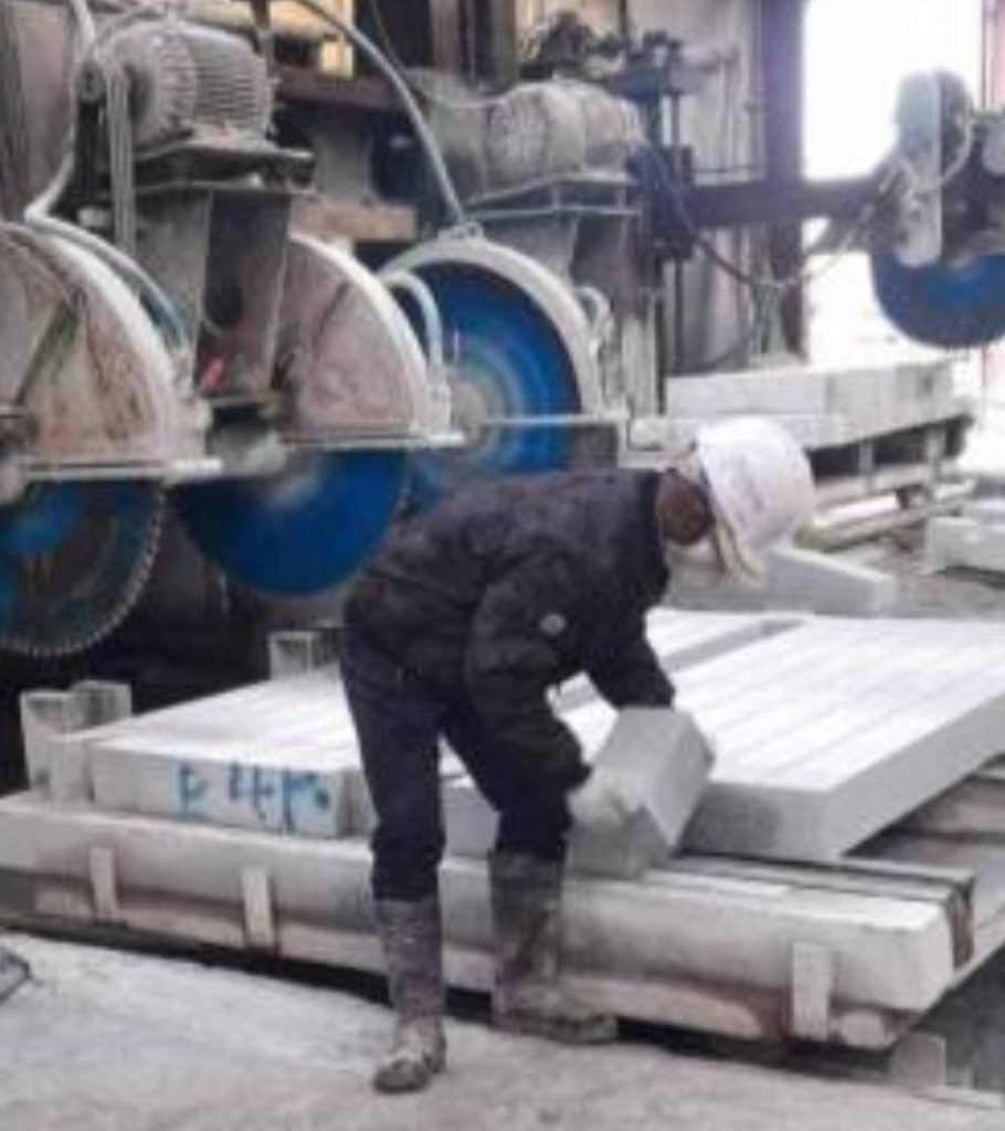 A worker B is lifting and carrying a small stone weighing about 45kg. Source: Jeong-ok Kong